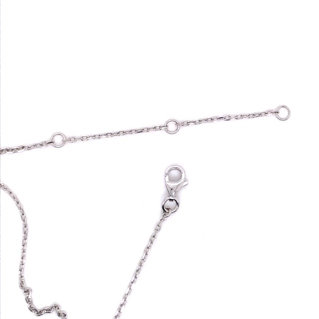 925 sterling silver with rhodium plating and cubic zirconia on a adjustable 16″ to an 18″ chain.